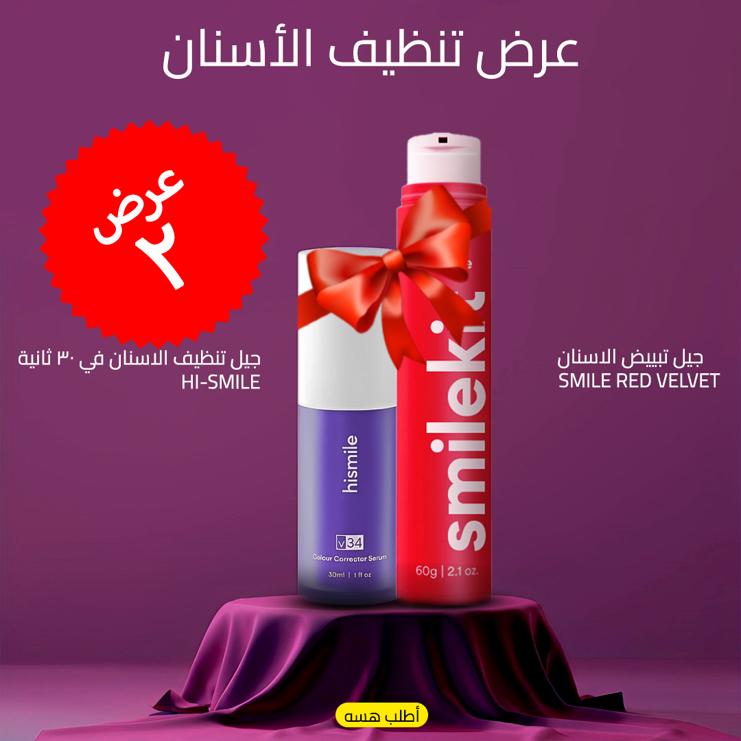 • *مميزات المنتج* • جيل تبييض الاسنان SMILE RED VELVET • 1- تفتيح لون الأسنان: • يعمل المعجون على تفتيح لون الأسنان وازالة الاصفرار الناتج عن التدخين وشرب القهوة والشاي. • 2- تعزيز صحة اللثة: • يساعد المعجون على مكافحة البكتيريا التي تسبب التهابات اللثة وأمراض اللثة. • 4- نفس منعش: • يمنح المعجون نفسا منعشا يدوم طويلا. • 5- حماية المينا: • يساعد المعجون على حماية مينا الأسنان من التآكل والتسوس. • 6- استخدام آمن: • معجون الأسنان آمن للاستخدام اليومي ولا يسبب أي تهيج اللثة أو الحساسية. • جيل تنظيف الاسنان في 30 ثانية HI-SMILE • . تبييض الأسنان: • يستخدم تقنية تصحيح اللون لإخفاء اصفرار الأسنان، مما يجعلها تبدو أكثر بياضًا وإشراقًا. • يحتوي على مواد كاشطة لطيفة تساعد على إزالة البلاك ، مما يمنحك ابتسامة أكثر بياضًا. • 2. إزالة • تركيبته الفريدة تشمل مواد كاشطة لطيفة تساعد على إزالة البلاك من أسنانك، مما يحافظ على صحة اللثة ويمنع تسوس الأسنان. • 3. منع رائحة الفم الكريهة: • يحتوي على نكهات منعشة مثل النعناع المنعش الذي يدوم طويلاً، مما يعزز صحة الفم ويمنحك نفسًا منعشًا. • 4. آمن على الاستخدام: • خالٍ من الكبريتات والفلوريد، مما يجعله آمنًا على الاستخدام اليومي حتى لأولئك الذين يعانون من حساسية اللثة. • 5. مناسب للاستخدام مع تقنيات تبييض الأسنان الأخرى: • يمكن استخدام معجون الأسنان V34 الأرجواني مع تقنيات تبييض الأسنان الأخرى، مثل شرائط التبييض أو هلام التبييض، للحصول على أفضل النتائج. • 6. نتائج سريعة: • يمكن أن تظهر نتائج تبييض الأسنان في غضون أيام قليلة من الاستخدام المنتظم. • 7. يحافظ على صحة اللثة: • يساعد على منع التهاب اللثة وأمراض اللثة الأخرى من خلال إزالة البلاك والمحافظة على صحة اللثة. • *تفاصيل سريعة* • عبوتان : عبوة جيل تبييض الاسنان SMILE RED VELVET + عبوة جيل تنظيف الاسنان في 30 ثانية HI-SMILE • • ابتسامة براقة في 30 ثانية فقط! جرب عرض جيل تبييض الأسنان SMILE RED VELVET مع جيل تنظيف الأسنان HI-SMILE واحصل على ابتسامة ناصعة البياض ونظيفة بشكل لا مثيل له.